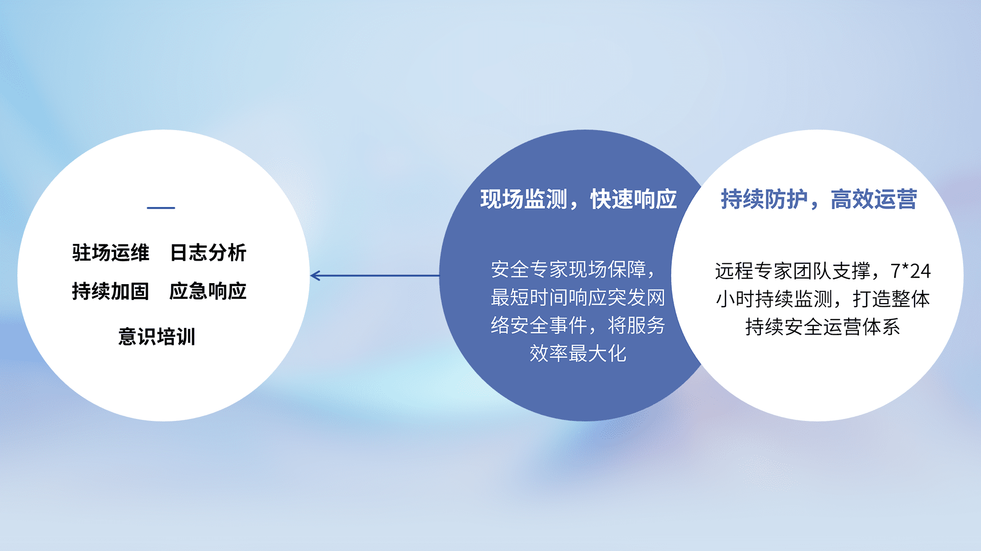 7X24小时持续监测安全事件,保持安全策略有效性,降低资产脆弱性风险,,,精准拦截黑客攻击,,,,减少被黑客利用的机会,,第一时间遏制,,,降低损失。。。